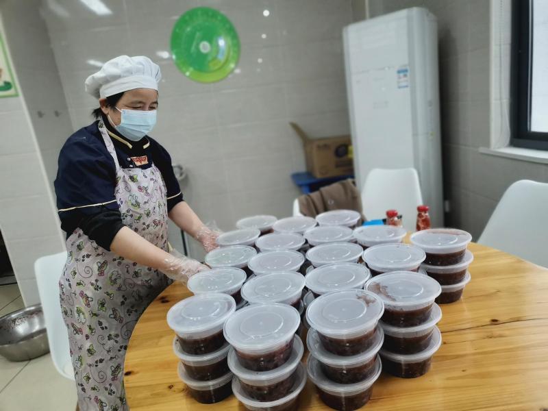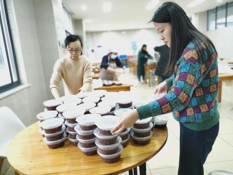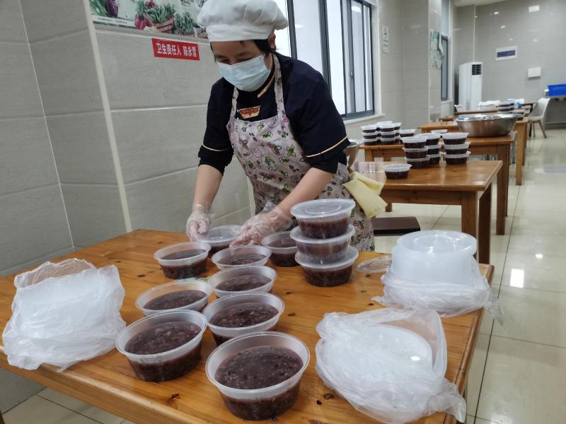 腊八粥精心煮熟之后,学校总务处协助食堂人员将腊八粥一碗碗打包好,为大家送去节日的祝福,将这份美好的传统延续,传递寒冬里的温暖与爱心。