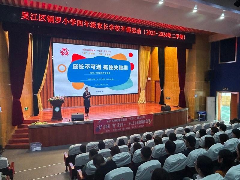 为进一步加强家校沟通,有效地指导家长开展正确的家庭教育,铜罗小学于4月18日举行了四年级家长学校开课活动,此次开课活动由苏州市妇联,吴江区妇联,桃源镇妇联联合主办的“家”点精彩 “育”见未来——吴江区生命健康教育成长营提供。四年级的家长们听取了“成长不可逆,抓住关键期”专题讲座,此次讲座的专家是袁园老师,袁老师是国家二级心理咨询师,国家青少年心理健康指导师,苏州市未成年人健康成长指导中心的首席苏老师。