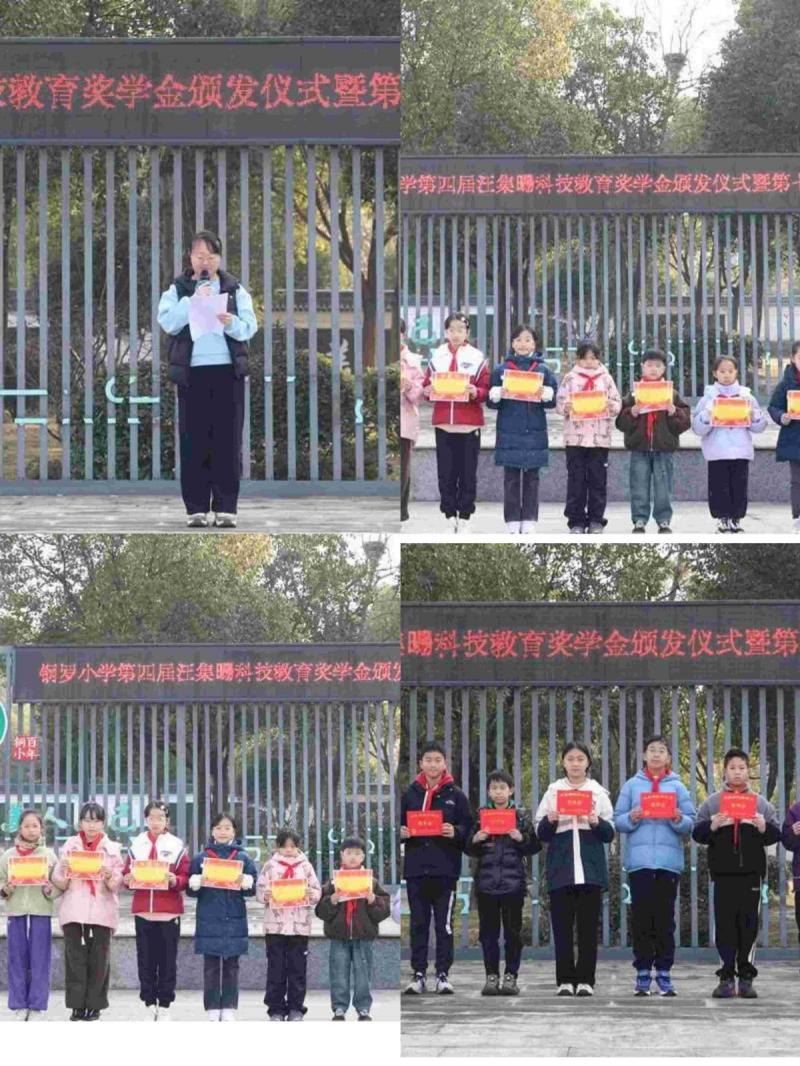 2025年1月3日上午大课间,铜罗小学举行第七届科技节闭幕式暨汪集暘科技教育奖金颁发仪式。学校领导为科技节活动的获奖同学颁发了获奖证书及奖品。随后分批次颁发了本年度的汪集暘科技教育教学金,年度“小院士”奖获奖者周懿轩代表所有获奖者发言。活动的最后李育红校长为闭幕式致辞,寄语铜小学子,希望同学们在科技创新大路上不断进步,期待下一届科技节带来更多的惊喜与突破。