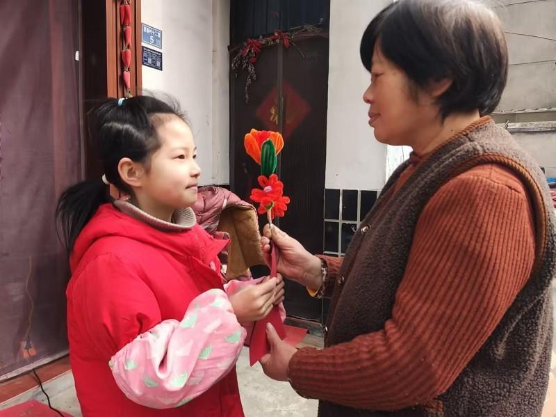 一二年级的同学们尝试用心为女性长辈做一件小事,让家人感受到自己的关心和爱意,如给家人捶背、洗脚、倒一杯水等。这些小事情看似简单,但却能表达最真挚的爱。