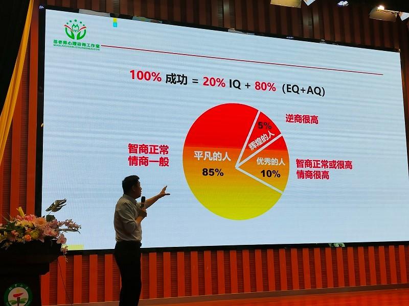 苗老师围绕“什么是逆商?”“逆商不良的表现”“逆商的影响因素”和“家长该怎么做”这四个方面展开,从专业的心理学角度给家长解释了逆商,逆商(AQ来自英文Adversity Quotient)全称逆境商数,一般被译为挫折商或逆境商。它是指人们面对逆境时的反应方式,即面对挫折、摆脱困境和超越困难的能力,是美国职业培训师保罗·斯托茨提出的概念,其中提到IQ智商、EQ情商,AQ逆商并称为3Q,是人们获得成功的必备条件。苗老师用一个个生动的案例,让家长了解挫折教育的四大误区和应对挫折的八大方法。