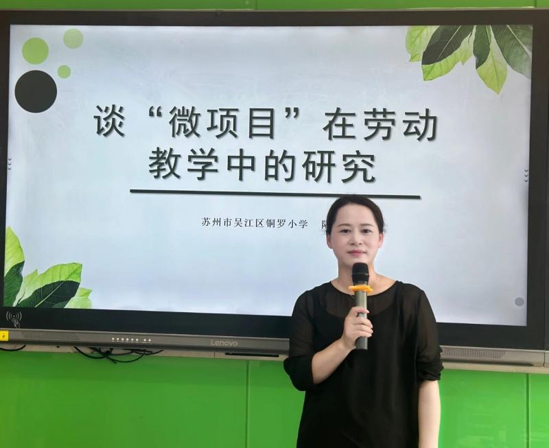 铜罗小学、苏州市学科带头人陆滢老师作专题讲座《谈“微项目”在小学劳动教学中的研究》。陆老师认为,劳动微项目是让劳技教学从“空泛低效”走向“真学实效”的有效路径。例如四年级下册“手缝”一单元,书本上的内容并不能充分锻炼学生的技能,那么设定一个“手缝微项目”,通过教学内容广度和深度的发展,便能实现教学效果的最优化。微项目的选题与设计尤为重要,在选题时应坚持生活性、趣味性、操作性原则,而教学设计应确保系统性、系列性、层次性。通过微项目教学,可以让每位学生成为有技术知识、创新思维、实践能力的一代新人,同时逐步提升小学劳动教育的整体水平。