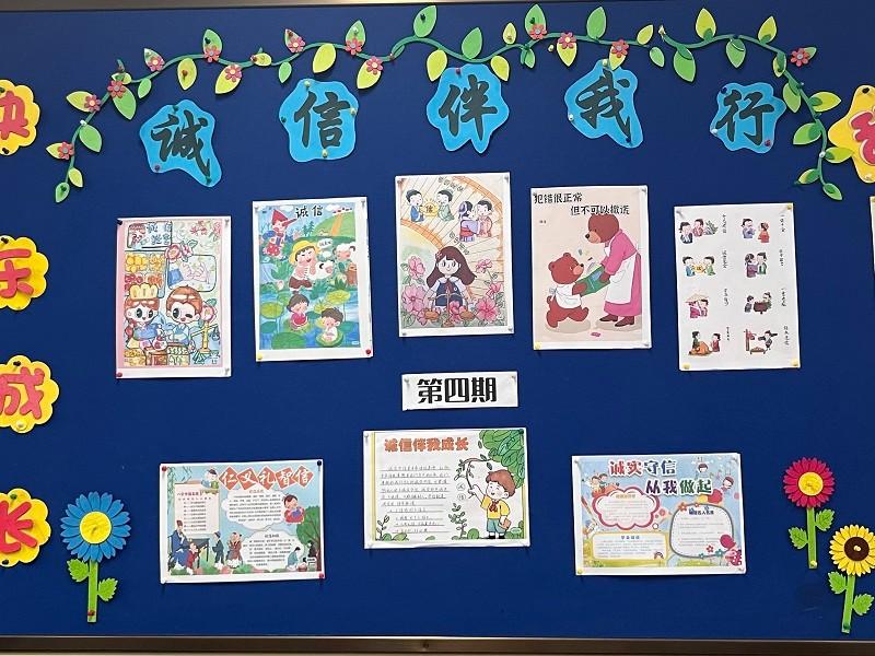 各班布置一期“进取和诚信”主题板报,并开展校级评比,丰富的内容加深了学生们对诚信和进取的理解。