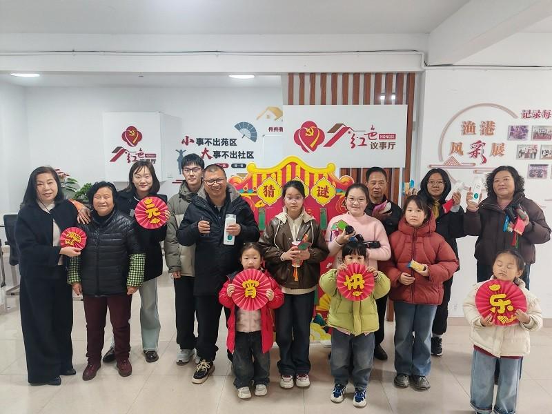 随后,社区里挂起了红彤彤的灯笼和五颜六色的谜条,一场趣味十足的猜灯谜活动开始了。孩子们三五成群,或低头沉思,或热烈讨论,争相竞猜。猜中谜底的孩子欢呼雀跃,兴高采烈地兑换小礼品,现场气氛热烈而欢快。