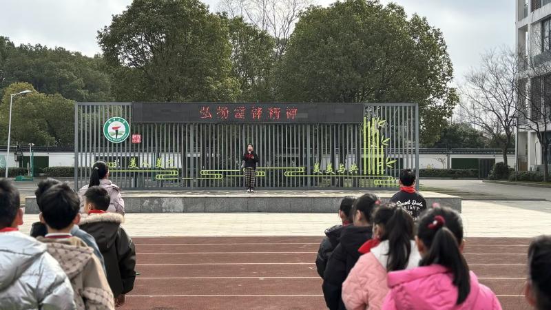 庄严的升旗仪式是进行爱国主义和集体主义教育的重要阵地。我们以“雷锋精神践于行,志愿服务暖于心”为主题,精心组织了国旗下讲话。六(3班学生钟绮恩进行国旗下分享。她的讲话深刻阐述了雷锋精神穿越时空的永恒价值,指出雷锋精神“从来不是历史课本里的铅字,而是我们身边触手可及的温暖”。分享将雷锋精神与新时代青少年的使命担当相结合,强调学习雷锋“不是要求我们做苦行僧,而是教会我们在奉献中寻找生命的意义;不是苛求人人成为英雄,而是相信点滴善意终将汇成星辰大海”。通过回顾雷锋“出差一千里,好事做了一火车”的感人事迹,以及他“干一行爱一行、专一行精一行”的“钉子”精神,引导同学们认识到,伟大源于平凡,崇高寓于点滴。讲话号召全体同学从身边小事做起,“做一束光,照亮需要温暖的角落;做一粒种,扎根祖国需要的地方”,将崇高的理想信念转化为服务他人、奉献社会的具体行动。此次讲话成功地将雷锋精神从历史符号转化为鲜活的时代命题,激发了同学们“人人争当志愿者,个个成为小雷锋”的内在动力。